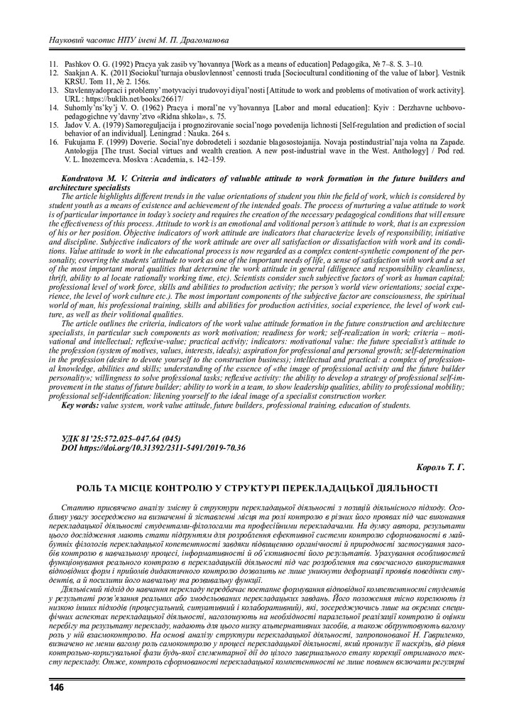 Стаття 2023/01/18Роль та місце контролю в структурі перекладацької діяльності