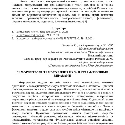 Стаття 2023/10/19Самоконтроль та його вплив на заняття фізичними вправами