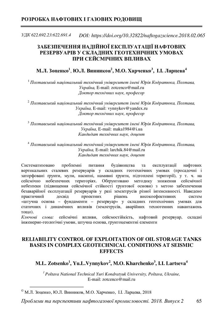 Забезпечення надійної експлуатації нафтових резервуарів у складних геотехнічних умовах при сейсмічних впливах