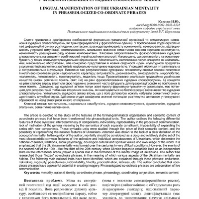 Стаття 2023/11/28Лінгвальні вияви української ментальності у фразеологізованих сурядних словосполученнях