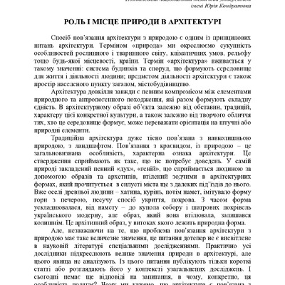 Стаття 2017/06/10Роль і місце природи в архітектурі