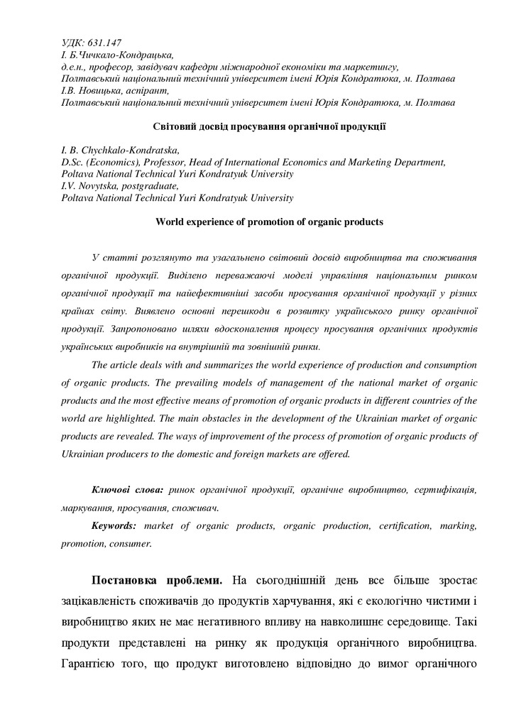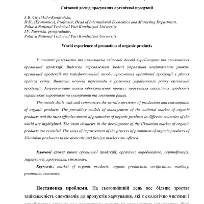 Проаналізовано органічний ринок України та відповідно до світового досвіду за науковими підходами...