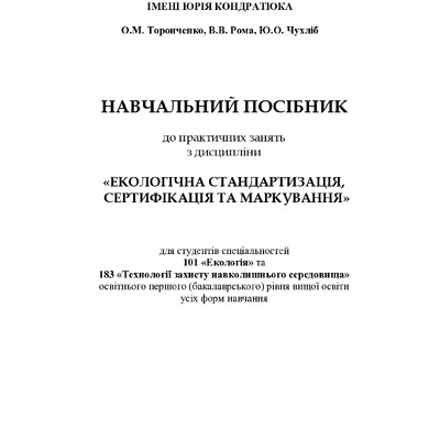 2020/04/06Навчальний посібник до практичних занять із дисципліни «Екологічна стандартизація, сертифікація та маркування»