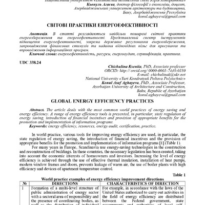 В статті розглядаються найбільш поширені світові практики енергозбереження та енергоефективності....