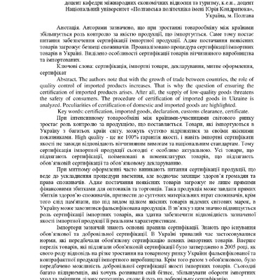 Авторами зазначено, що при зростанні товарообміну між країнами збільшується роль контролю за якістю продукції, що імпортується. Саме тому постає питання забезпечення сертифікації імпортної продукці...