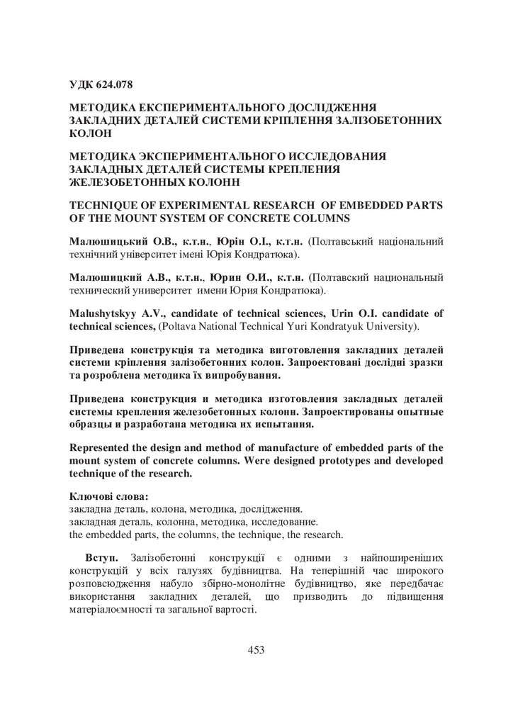 Приведена конструкція та методика виготовлення закладних деталей системи кріплення залізобетонних колон. Запроектовані дослідні зразки та розроблена методика їх випробування.