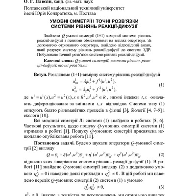 Знайдено Q-умовні симетрії (1+1)-вимірної системи рівнянь реакції-дифузії з певними обмеженнями н...