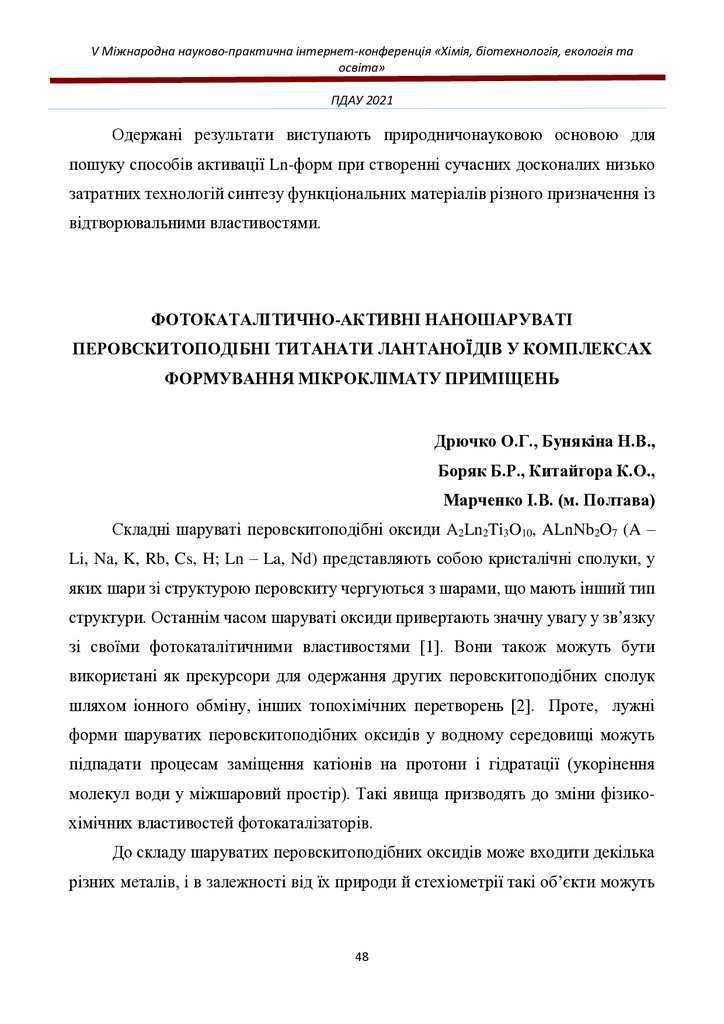 2022/05/26Фотокаталітично-активні наношаруваті перовскитоподібні титанати лантаноїдів у комплексах формування мікроклімату приміщень