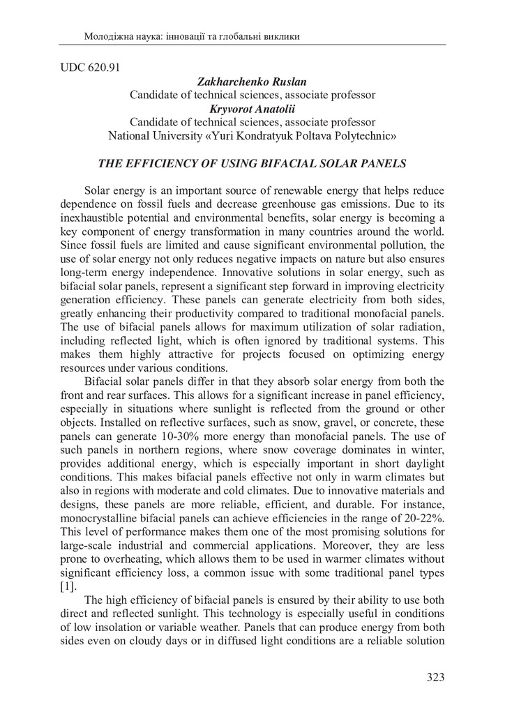 Використання сонячної енергії є важливим компонентом енергетичної незалежності України. Дослідження впливу метеорологічних факторів на ефективність роботи фотоелектричних панелей дає змогу оптимізу...