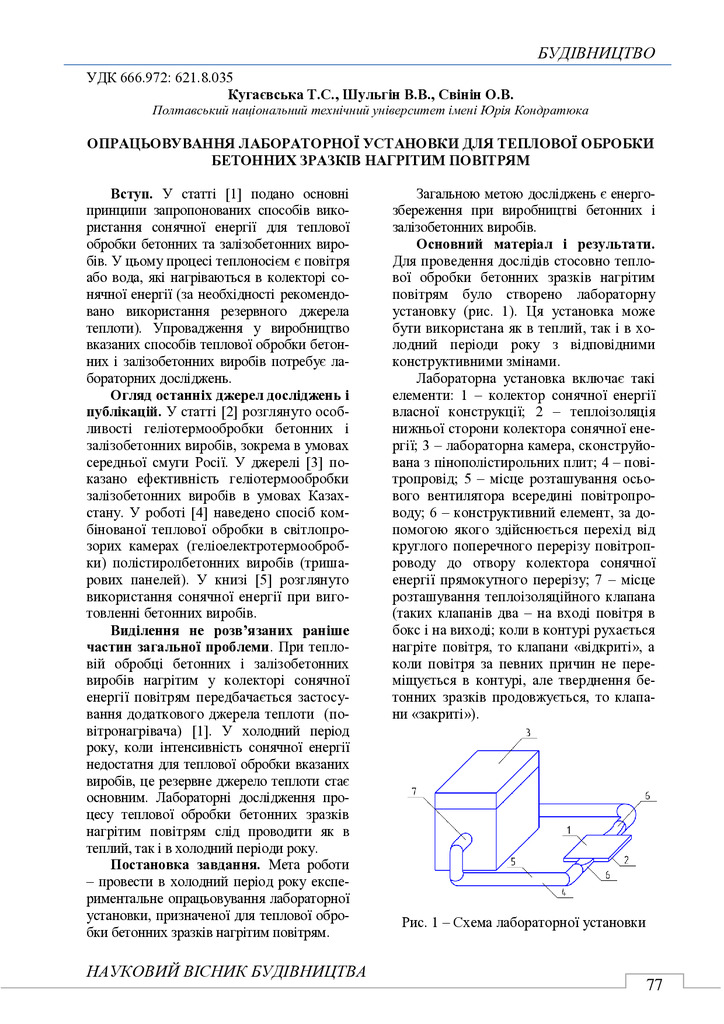 2017/03/22Лабораторні дослідження теплової обробки бетонних зразків нагрітим повітрям