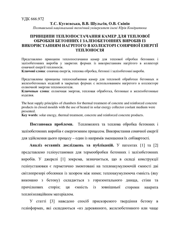 2017/06/02Принципи теплопостачання камер для теплової обробки бетонних і залізобетонних виробів із використанням нагрітого в колекторі сонячної енергії теплоносія