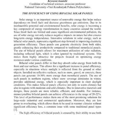 Роботу присвячено оцінці ефективності та економічної доцільності використання фотоелектричних пан...
