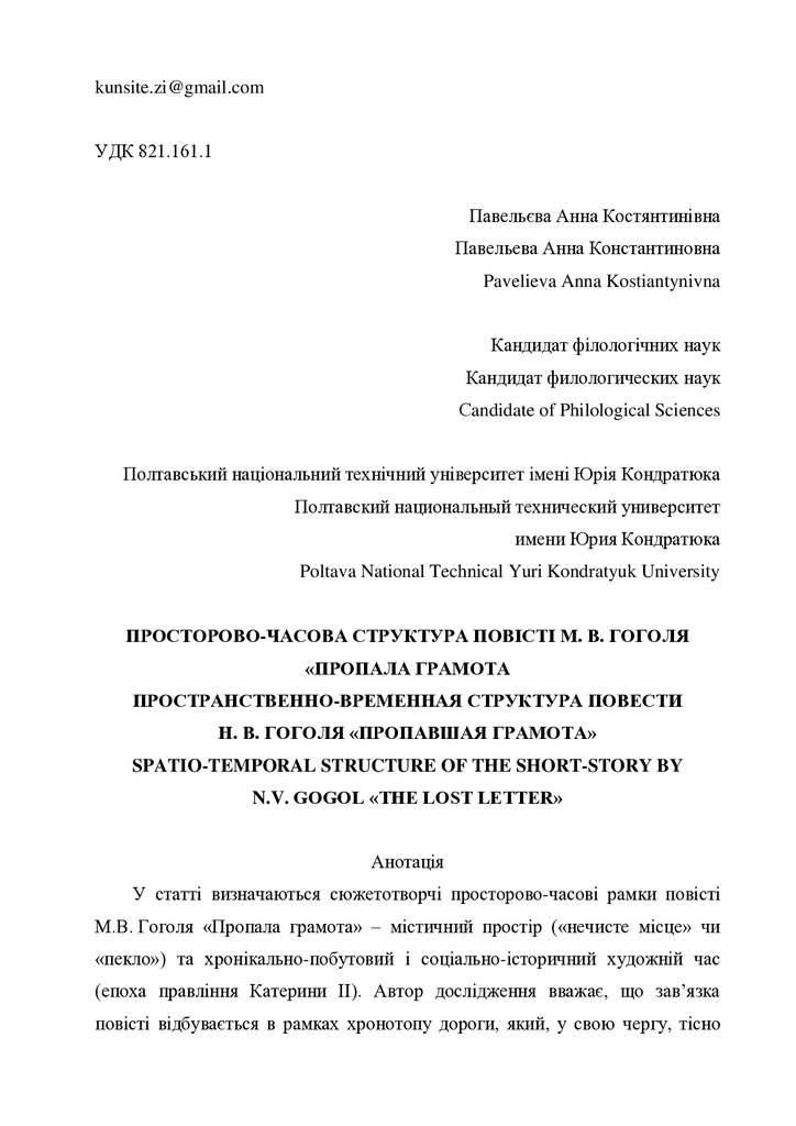 Пространственно-временная структура повести Н.В. Гоголя «Пропавшая грамота»