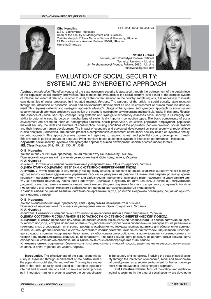 The effectiveness of the state economic security is assessed through the achievement of the certain level of the population social stability and welfare. This requires the evaluation of the social ...