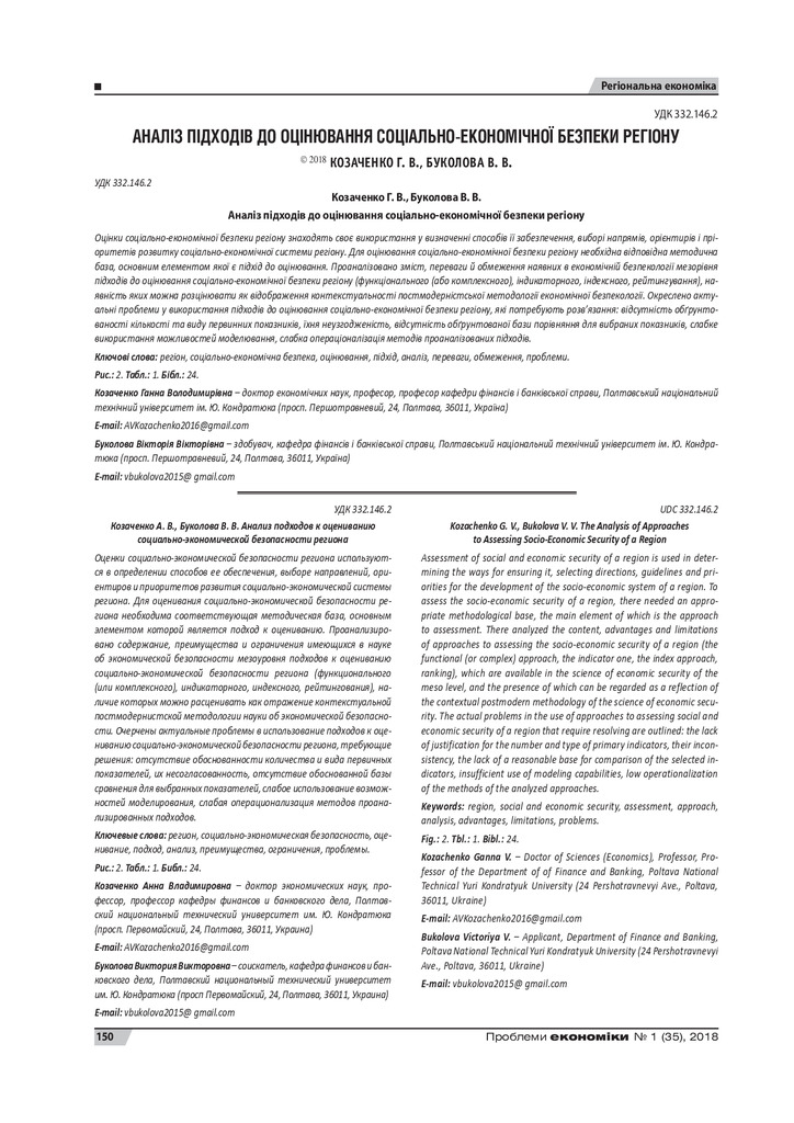 2018/09/25Аналіз підходів до оцінювання соціально-економічної безпеки регіону