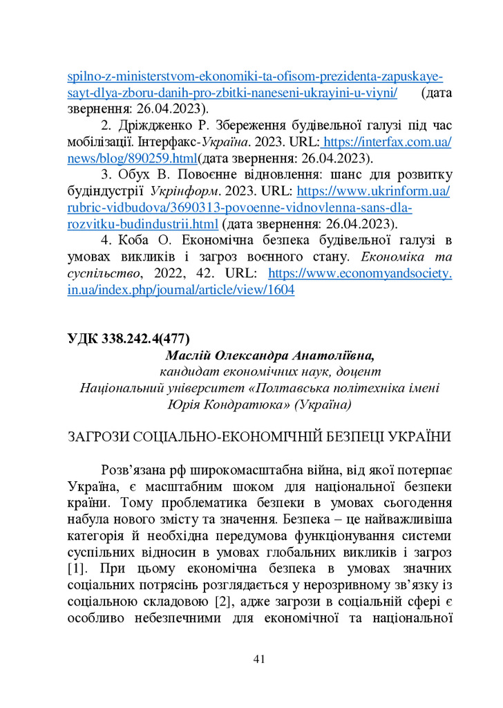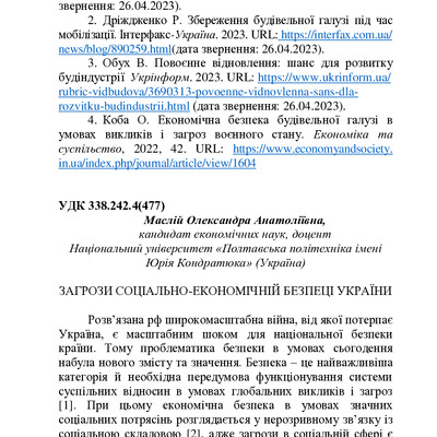 2024/04/17Виклики та загрози соціально-економічній безпеці України в умовах воєнного стану