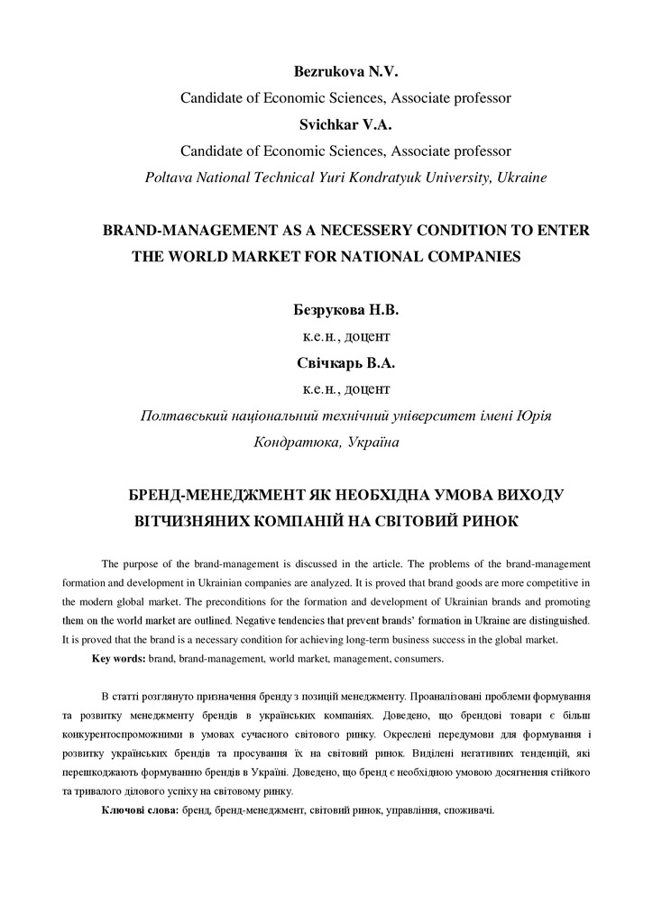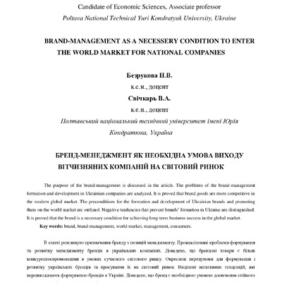 Стаття 2017/04/01Brand-management as a necessery condition to enter the world market for national companies