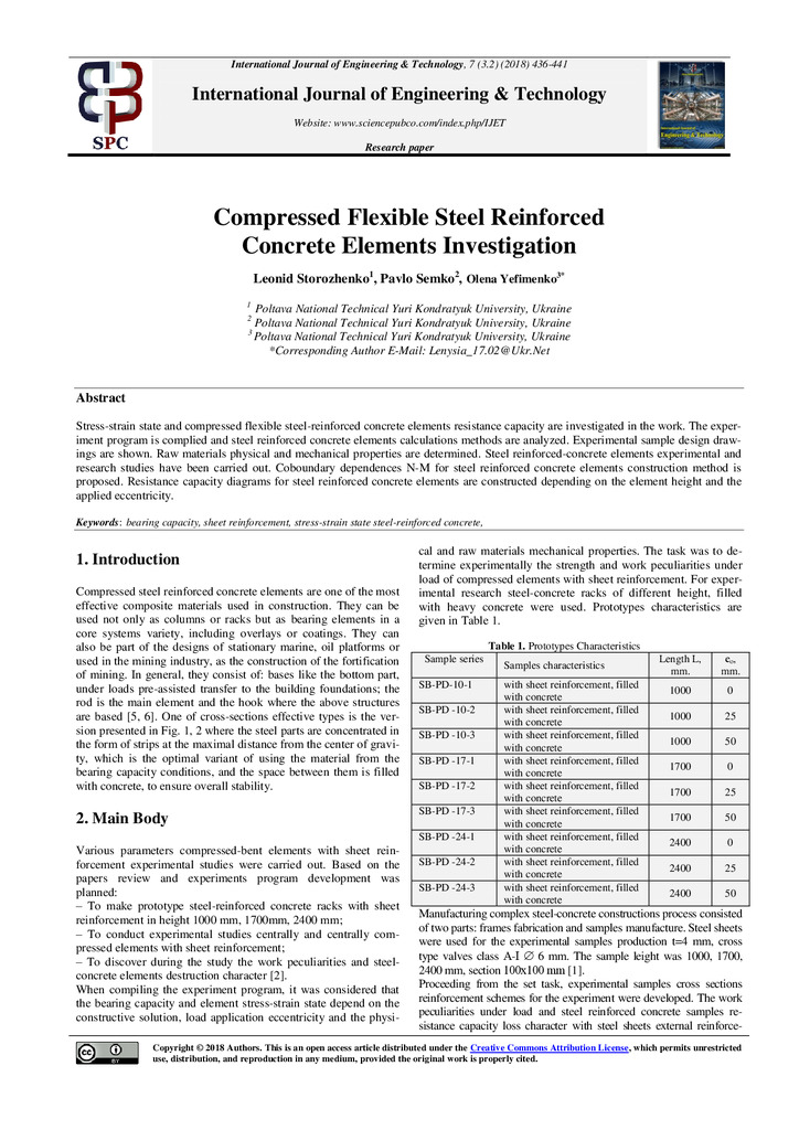 Stress-strain state and compressed flexible steel-reinforced concrete elements resistance capacity are investigated in the work. The exper-iment program is complied and steel reinforced concrete el...