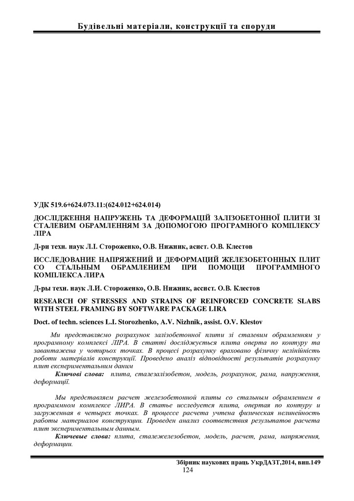 Стаття 2020/06/26Дослідження напружень та деформацій залізобетонної плити зі сталевим обрамленням за допомогою програмного комплексу ЛІРА