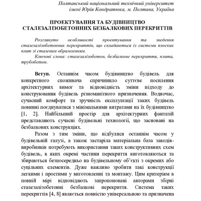 Проектування та будівництво сталезалізобетонних безбалкових перекриттів