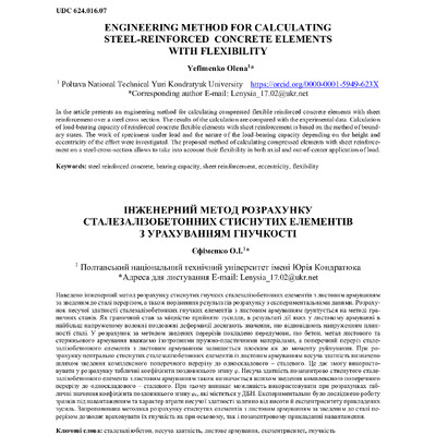 Стаття 2022/04/14Engineering method for calculating steel-reinforced concrete elements with flexibility