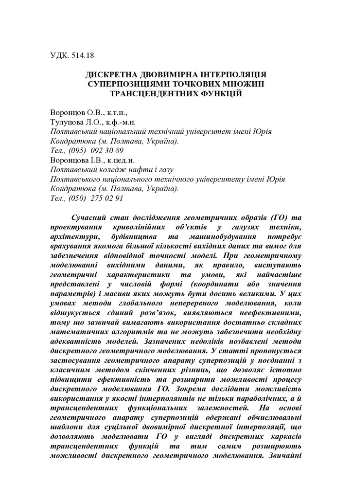 Формування дискретних моделей n-вимірних геометричних образів (ГО) передбачає залучення методів, ...