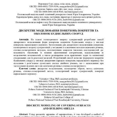 Стаття 2019/06/19Дискретне моделювання поверхонь покриттів та оболонок будівельних споруд