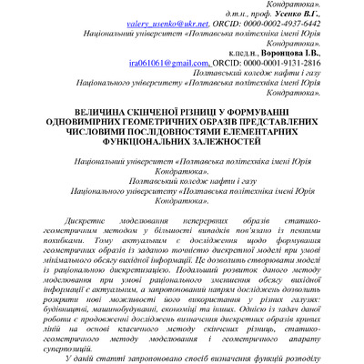 Стаття 2024/08/06Величина скінченої різниці у формуванні одновимірних геометричних образів представлених числовими послідовностями елементарних функціональних залежностей