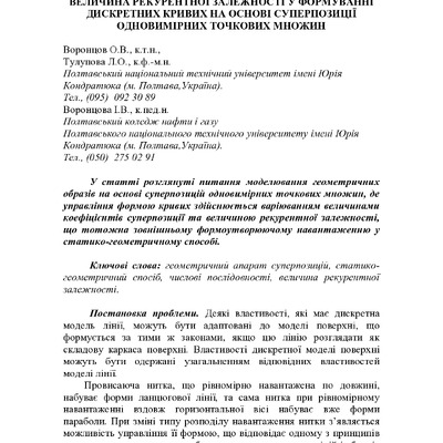 Стаття 2016/10/05Величина рекурентної залежності у формуванні дискретних кривих на основі суперпозиції одновимірних точкових множин