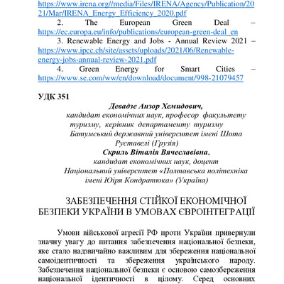 Забезпечення стійкої економічної безпеки України в умовах євроінтеграції