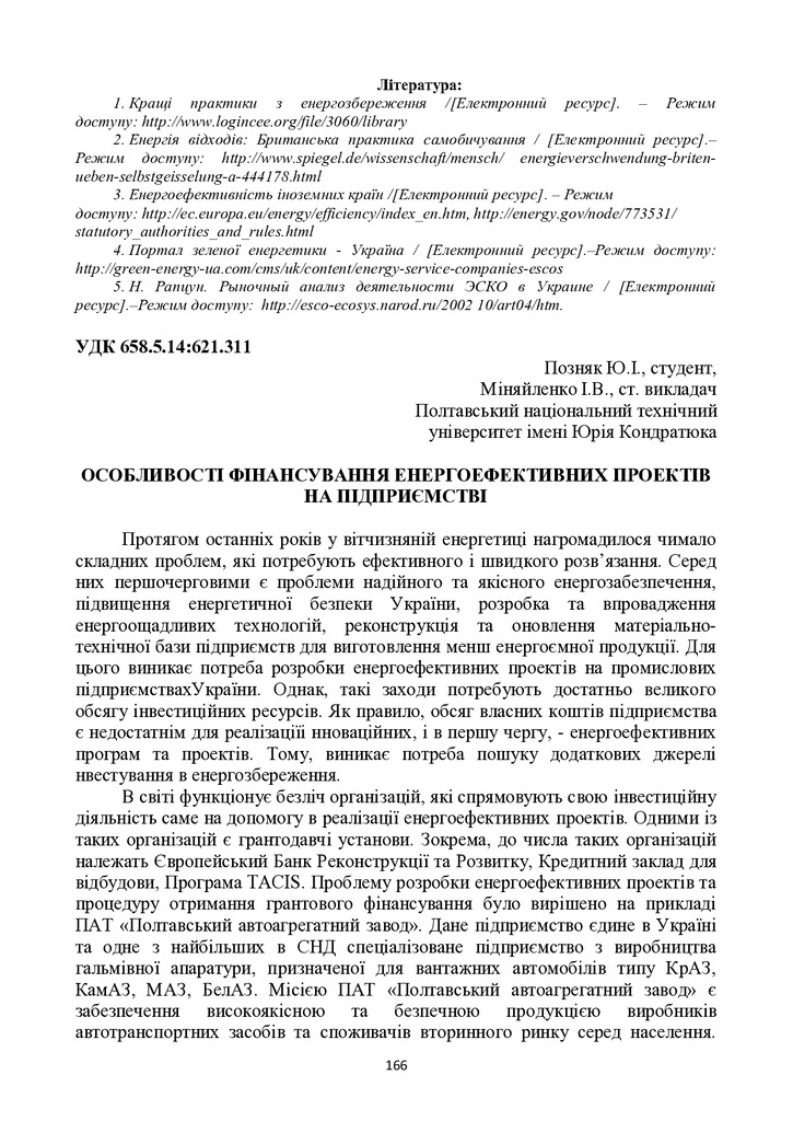 Особливості фінансування енергоефективних проектів на підприємстві