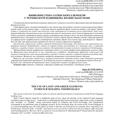 Стаття присвячена проблемі вживання латинських і грецьких елементів у формуванні термінів будівни...