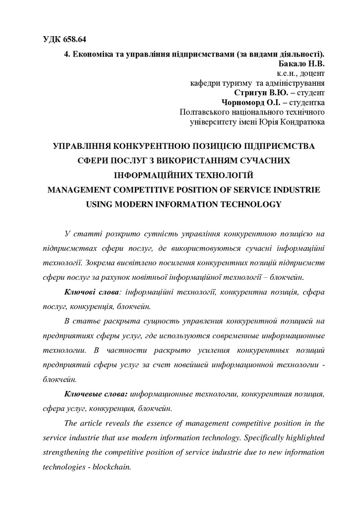 2022/04/27Управління конкурентною позицією підприємства сфери послуг з використанням сучасних інформаційних технологій