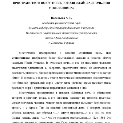 Художественное время и художественное пространство в повести Н.В. Гоголя «Майская ночь, или утопленница»