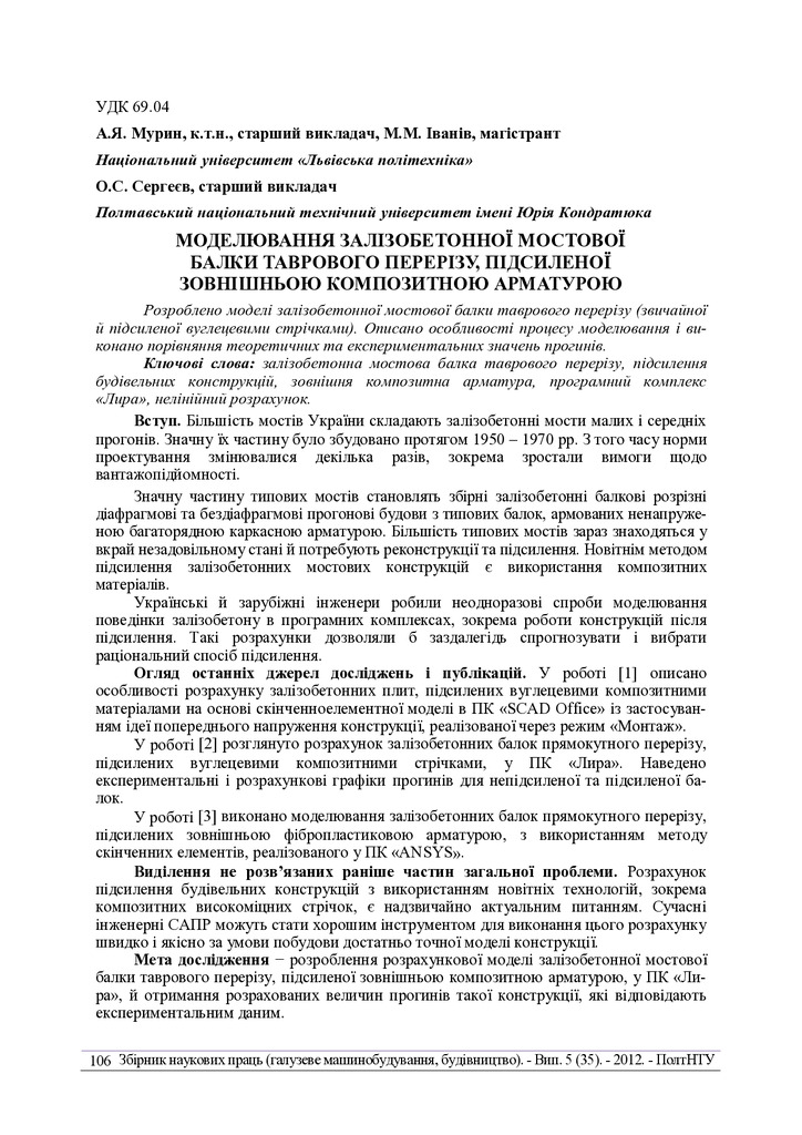 Розроблено моделі залізобетонної мостової балки таврового перерізу (звичайної й підсиленої вуглец...