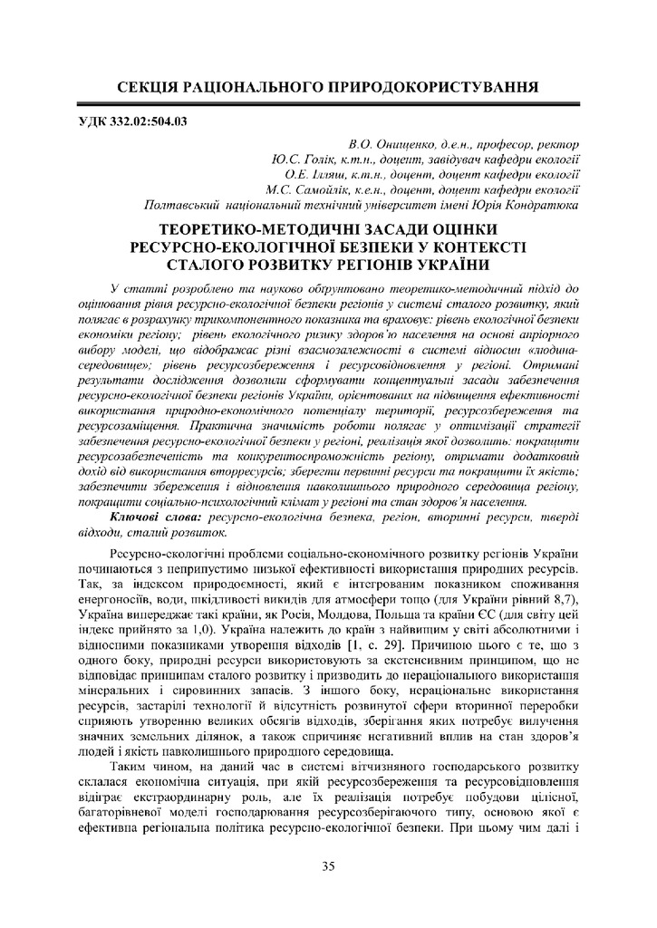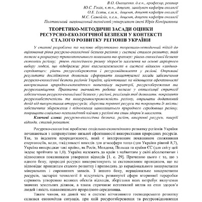 Теоретико-методичні засади оцінки ресурсно-екологічної безпеки у контексті сталого розвитку регіонів України