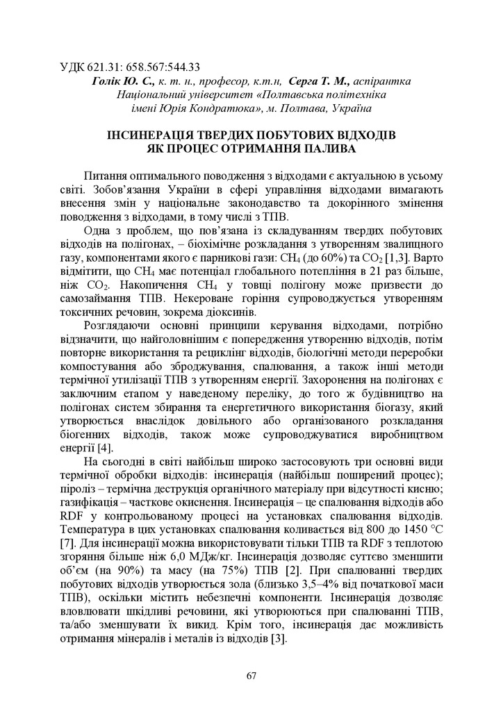 Тверді побутові відходи як резерв енергетичного потенціалу міста