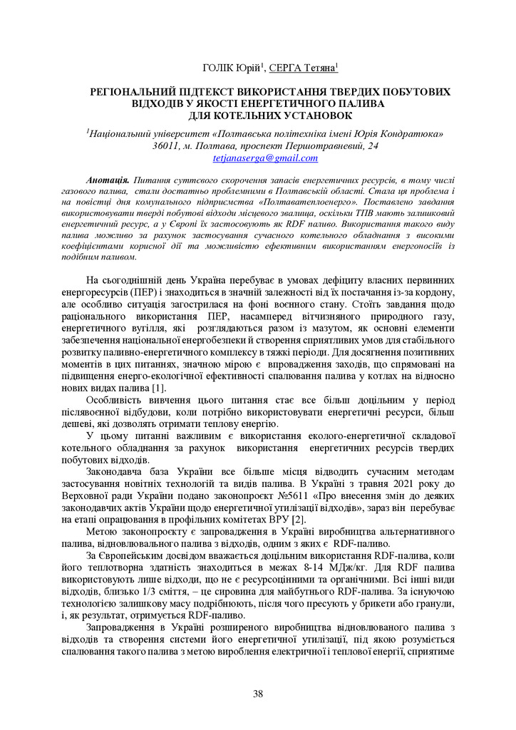 2023/06/09Регіональний підтекст використання твердих побутових відходів у якості енергетичного палива для котельних установок
