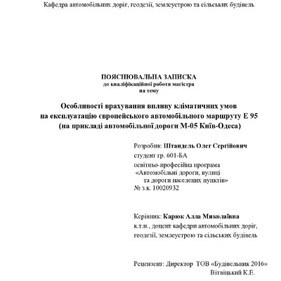 Магістерська робота присвячена прогнозуванню температурного режиму експлуатації дорожнього одягу ...