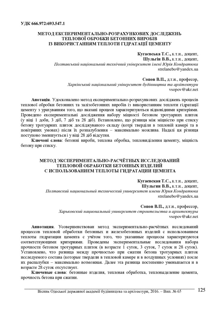 2017/03/22Метод експериментально-розрахункових досліджень теплової обробки бетонних виробів із використанням теплоти гідратації цементу