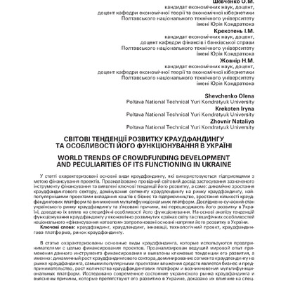 Світові тенденції розвитку краудфандингу та особливості його функціонування в Україні