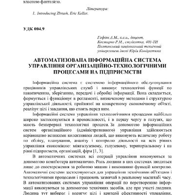 Стаття 2019/12/06Автоматизована інформаційна система управління організаційно-технологічними процесами на підприємстві