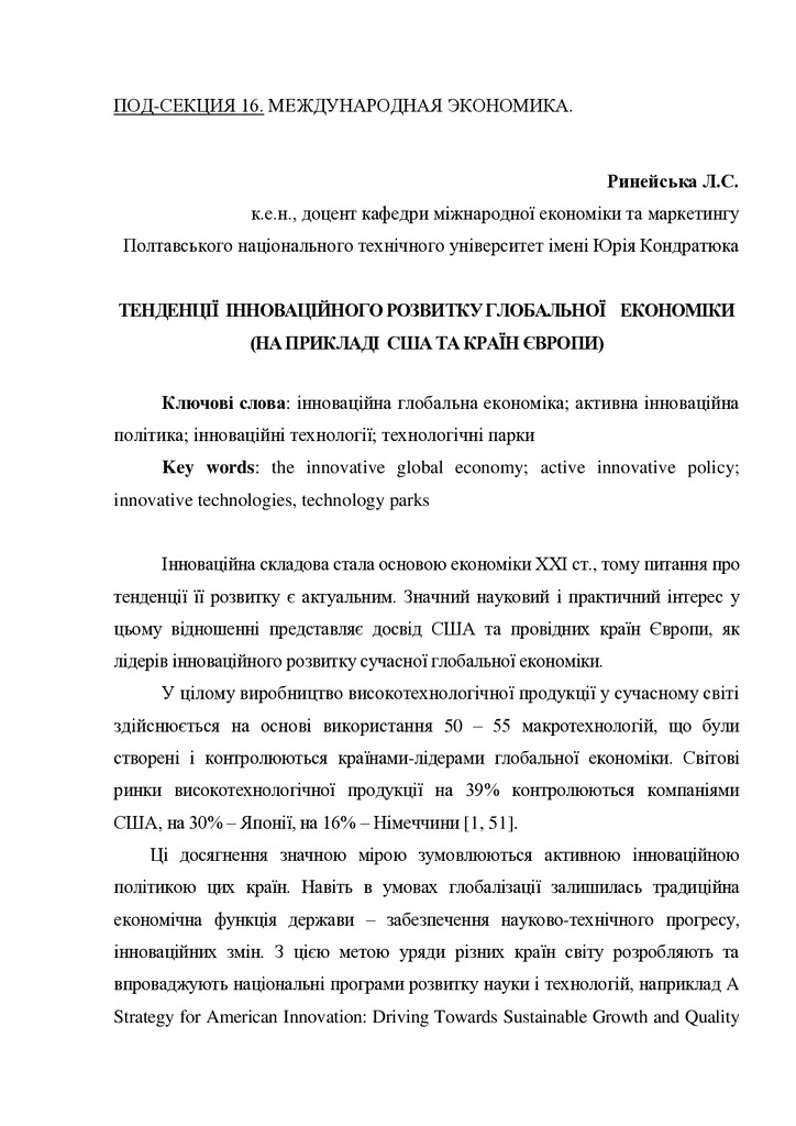 В умовах бурхливого розвитку сучасного науково-технічного прогресу конкурентоспроможною може бути лише інноваційна економіка. У зв’язку з цим є актуальним вивчення міжнародного досвіду наукових до...