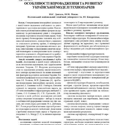 Особливості впровадження та розвитку української моделі технопарків