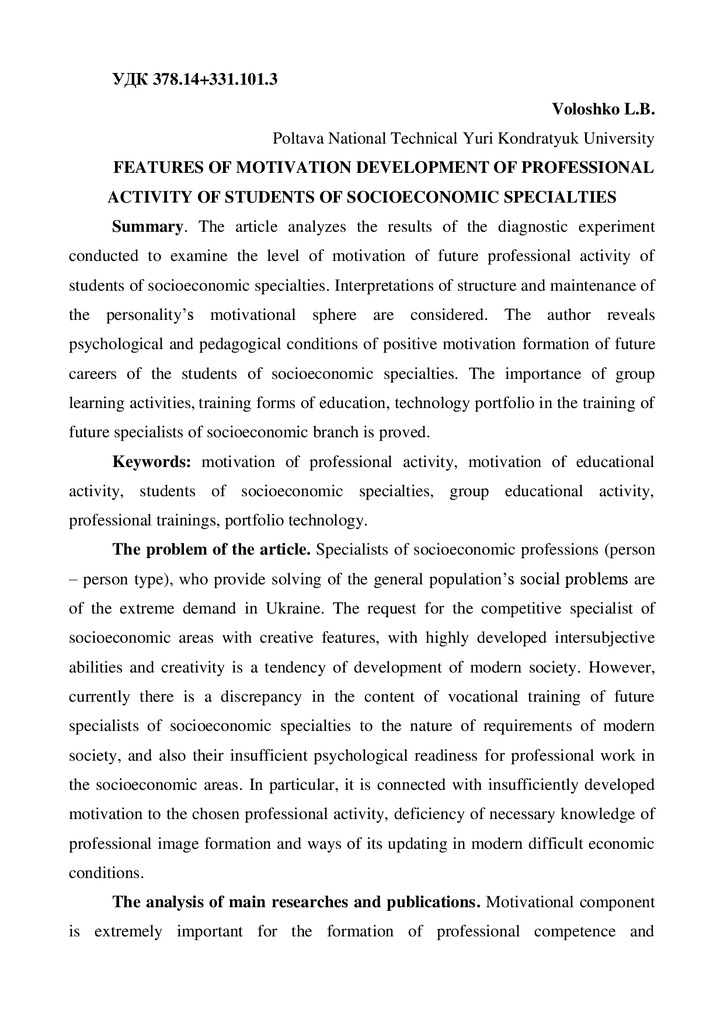 Features of motivation development of professional activity of students of socioeconomic specialties