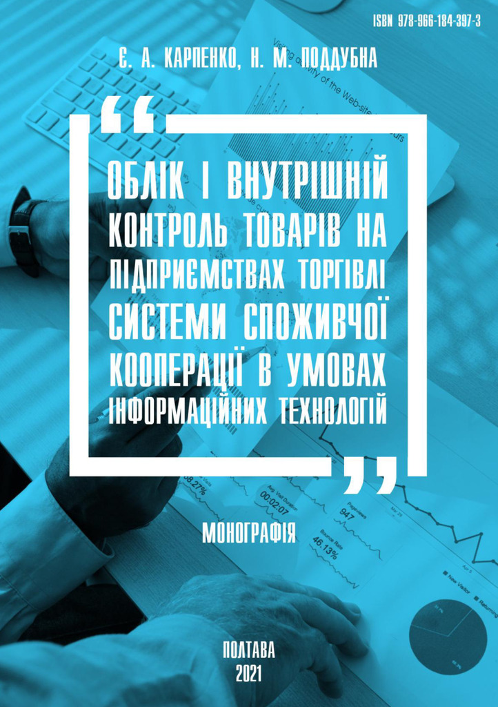 Монографія присвячена лослідженню теоретичних і практичних засад бухгалтерського обліку і контролю товарів на торговельних підприємствах споживчої кооперації