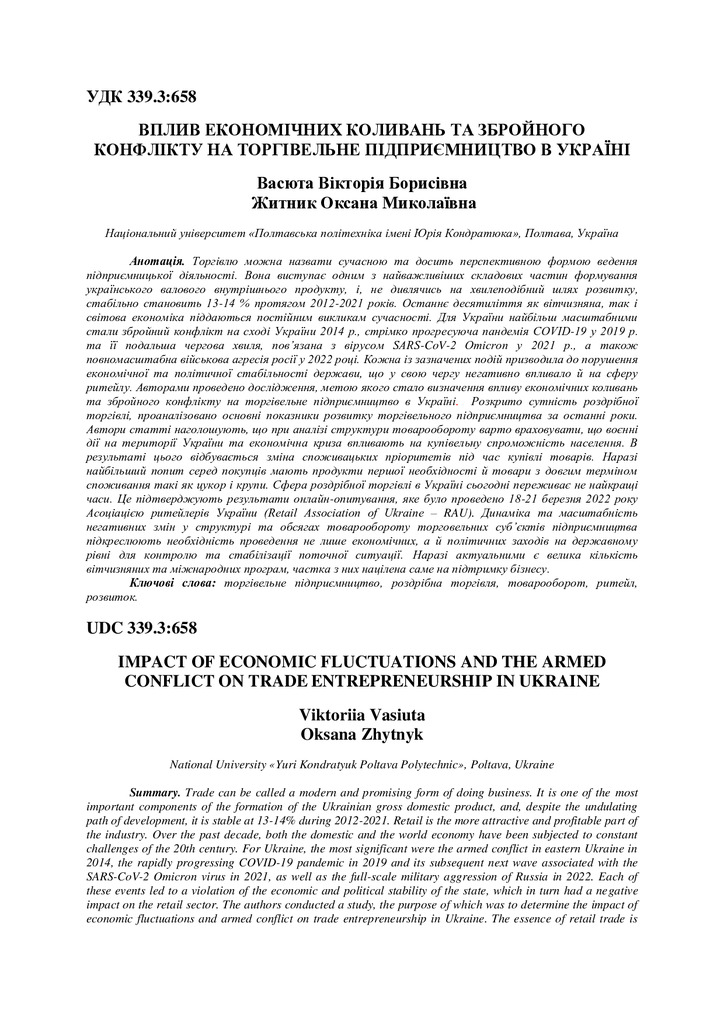 Вплив економічних коливань та збройного конфлікту на торговельне підприємництво в Україні