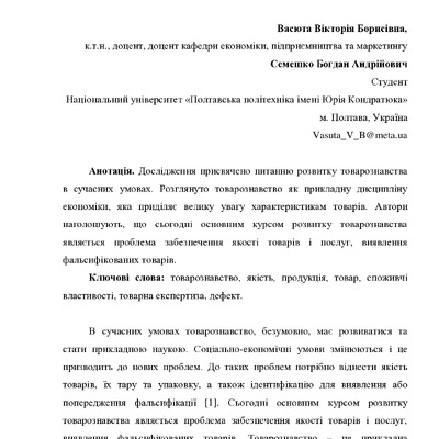Стаття 2023/10/24Тенденції розвитку товарознавства в сучасних умовах