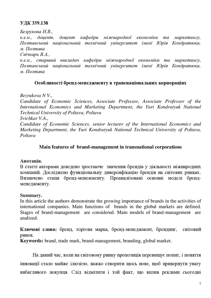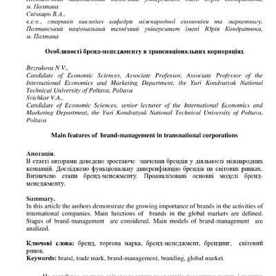 Стаття 2017/03/30Особливості бренд-менеджменту в транснаціональних корпораціях