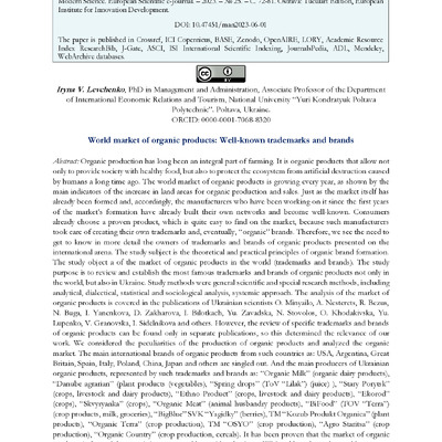 The study object a of the market of organic products in the world (trademarks and brands). The study purpose is to review and establish the most famous trademarks and brands of organic products not...